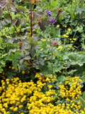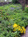 Unkräuter (Wildkräuter) werden, bis auf wenige Ausnahmen (Quecke, Giersch), belassen. Sehr schön und lehrreich sind auch die kleinen Biotope, die im gesamten Garten, einschließlich der Mauer und der Mauerkrone, verteilt sind. Dazu zählt auch ein Totholzbereich, in dem sich, wie im übrigen Garten auch, viele Tiere, wie Vögel und Insekten, angesiedelt haben bzw. hier Nahrung finden.