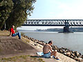 Wer möchte, kann einen Abstecher zu Fuß oder mit dem Fahrrad nach Mainz unternehmen. In der Nähe des Bahnhofs Gustavsburg befindet sich der Aufgang zu einer Eisenbahnbrücke mit einem Fuß- und Radweg zur anderen Rheinseite. Von dieser Brücke aus hat man ebenfalls einen schönen Blick auf die Mündung, auf den Rhein und auf Mainz.