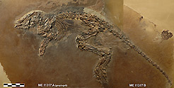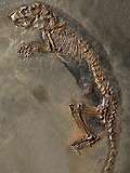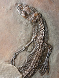 Als früher Vertreter der Krustenechsen ( Helodermatidae ) konnte eine etwa 50 Zentimeter lange Echse identifiziert werden. Die seit der Kreidezeit bekannte Familie, zu deren nahen Verwandten die heute im Südwesten der USA vorkommenden Gila-Monster gehören, gilt wegen ihrer Giftigkeit als Bullbeißer der Echsenwelt. Auch das in Messel gefundene Skelett zeigt schon die typischen Giftrinnen an den Zähnen, die neben der Form des Unterkiefers darauf schließen lassen, dass auch diese Art bereits Giftstoffe produziert hat. "Von den Untersuchungen der Extremitäten und weiteren chemischen Analysen der Knochensubstanz erhoffe ich mir neue Erkenntnisse zur Evolution dieser einzigartigen Echsenart, die wahrscheinlich durch das während des Eozäns vorherrschende Klima bis nach Europa ausgewandert ist", erklärt Dr. Krister Smith. Der junge Reptilienexperte aus den USA hat schon als Schüler ein besonderes Interesse für die rosarot gefleckten Nachfahren der urzeitlich anmutenden Tiere entwickelt.