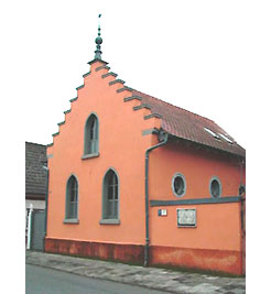 1875 bildeten acht jüdische Familien in Erfelden eine neue Religionsgemeinschaft. Die Einweihung der Synagoge fand im Beisein des orthodoxen Rabbiners von Darmstadt, Dr. Marx, am 06. Dezember 1877 statt.