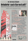 Mit der zur Buchmesse im UDVM-Verlag erscheinenden Publikation „Heimkehr nach Darmstadt? Meine Erinnerungen an die Stadt, die Menschen und die Kultur“ hält der Journalist, Buchautor und Kolumnist W. Christian Schmitt (Jg. 1944) berufliche Rückschau auf das, was seinerzeit mit einem Volontariat im Feuilleton des Darmstädter Echo begann. In dem Buch geht es in 18 Kapiteln um Begegnungen mit Personen aus Kultur, Wirtschaft und Kommunalpolitik der Heiner-Stadt, darunter auch mit vier Darmstädter Oberbürgermeistern: Günther Metzger, Peter Benz, Walter Hoffmann und Hanno Benz. In dem großformatigen Buch findet der Leser u.a. zahlreiche Entscheidungsträger von einst ebenso wie aktuelle Tischgespräche mit jenen, die heute noch das Gesicht dieser Kulturstadt mitprägen sowie Berichte oder Werkstatt-Besuche bei Vertretern von Kunst und Kultur. Bebildert ist der Retro-Blick auf fast 60 Jahre Journalismus mit rund 80 Fotos und Abbildungen.