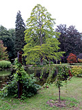 Bemerkenswert ist in Wolfsgarten vor allem der Bestand an alten exotischen Bäumen wie Sumpfzypresse, Japanische Schirmtanne und Japanischer Ahorn. Diese ließ Großherzog Ernst Ludwig zum Teil schon Ende des 19. Jahrhunderts pflanzen, ebenso wie die bis sechs Meter hohen Rhododendronbüsche, die - nach Farben sortiert - den Japanischen Garten umgeben. Der Charakter des Landschaftsraumes ist trotz mancher ebenfalls vorhandener nordamerikanischer Gehölze erhalten geblieben. Ein außergewöhnlicher Charakter, den andere aufwändig angelegte Japanische Gärten nie erreichen werden.