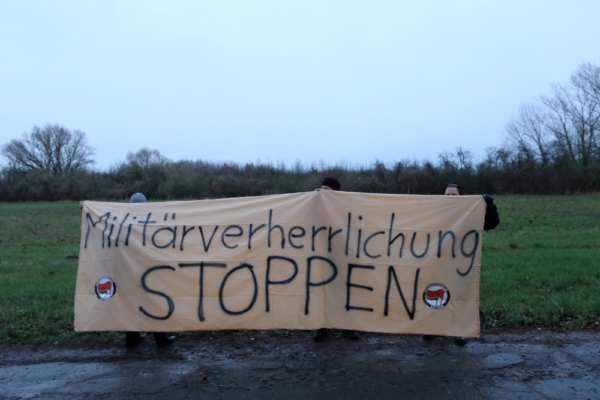 Am Rande der Gedenkstunde demonstrierte die "AntiFa Nierstein" gegen Militärverherrlichung und die "Patton-Stele" am Niersteiner Rheinufer.